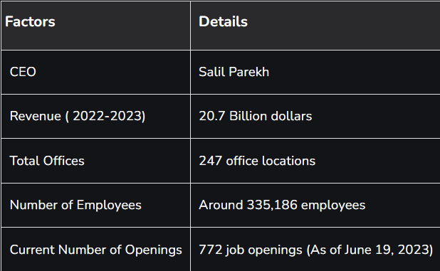 Infosys нь иж бүрэн зөвлөгөө өгөх, аутсорсинг, технологийн үйлчилгээ үзүүлдгээрээ дэлхийд хүчтэй байр суурь эзэлдэг. Энэ компани нь мэдээллийн технологийн зөвлөгөө, системийн интеграцчлал, программ хөгжүүлэлт, өгөгдлийн аналитик, үүлэн үйлчилгээ, бизнесийн үйл явцын аутсорсинг гэх мэт төрөл бүрийн үйлчилгээ үзүүлдэг. Infosys нь эрүүл мэнд, жижиглэн худалдаа, үйлдвэрлэл, эрчим хүч, санхүүгийн үйлчилгээ зэрэг янз бүрийн салбарт шийдэл гаргах туршлагатай. .
