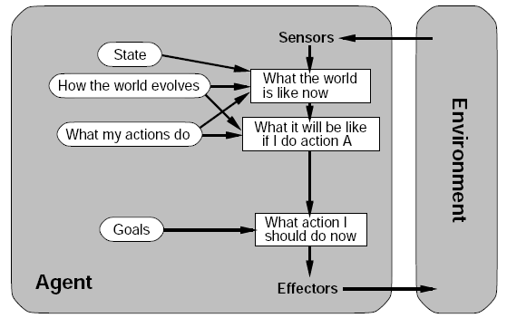 Төлөвт үндэслэсэн агентууд : Эдгээр нь санах ойтой агентууд бөгөөд өмнөх төлөв, өнөөгийн байдлын талаарх мэдээллийг хадгалж, үйлдлийг зохих ёсоор гүйцэтгэдэг. Яг л жолооч эгнээгээ солихыг хүсвэл ард нь байгаа тээврийн хэрэгслийн өнөөгийн байрлалыг мэдэхийн тулд толь руу харна. Ард  байгаа тээврийн хэрэгслийн мэдээлэлтэй байгаа тул эгнээгээ аюулгүй сольж болно.Үйлдлийг шийдэхийн тулд өмнөх болон одоогийн төлөвийг хурдан шинэчлэнэ.