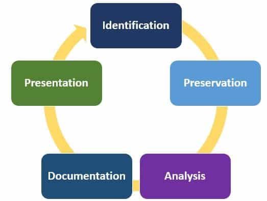 Цахим нотлох баримт цуглуулах нь нарийн төвөгтэй үйл явц бөгөөд өгөгдөл алдагдахгүй, гэмтээхгүй байхын тулд шүүх эмнэлгийн мэргэжилтнүүдэд хариуцдаг. Гэсэн хэдий ч дижитал нотлох баримтыг цуглуулах дөрвөн үндсэн бүрэлдэхүүн хэсэг байдаг.