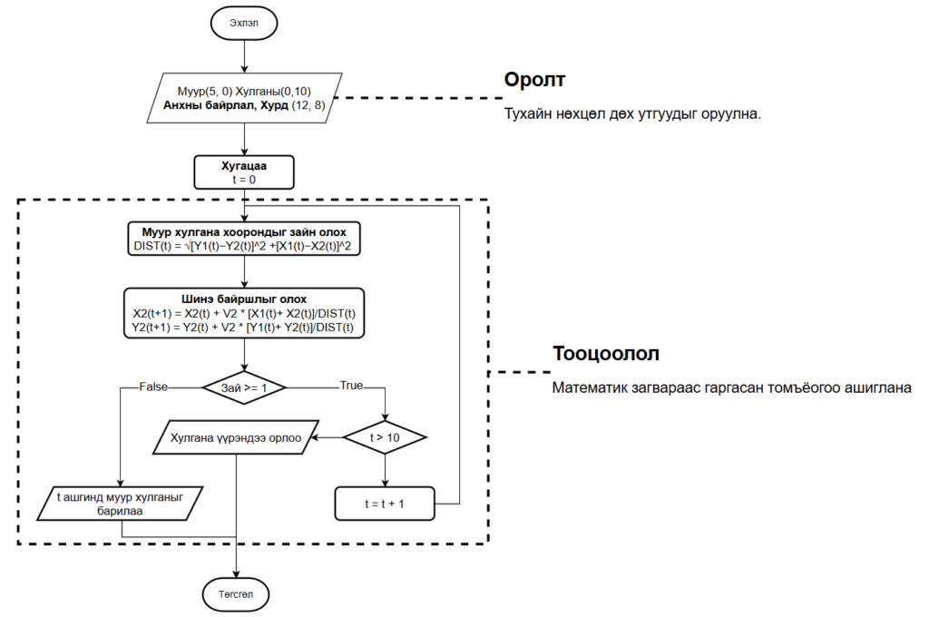 Хулгана = Анхны байрлал + 10(удаа) * M цэгийн хөдөлгөөн