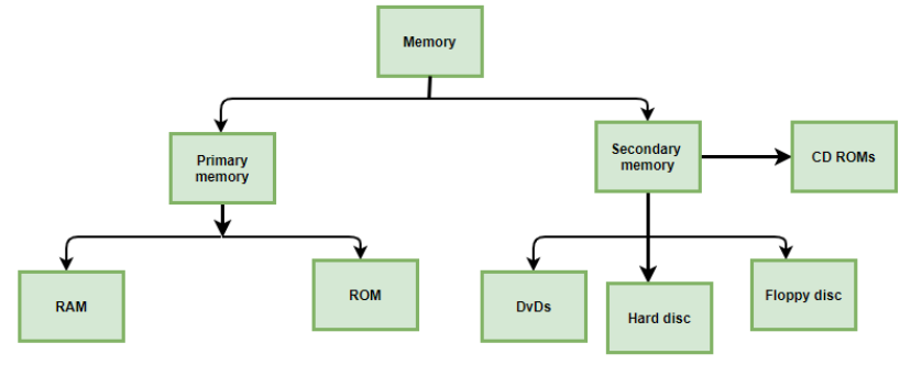 Хүний тархинд богино хугацааны санах ой, урт хугацааны санах ой, далд санах ой гэх мэт санах ойг хадгалах янз бүрийн арга байдаг. Үүний нэгэн адил компьютерт санах ойн янз бүрийн төрөл эсвэл санах ойг хадгалах өөр өөр аргууд байдаг. Эдгээр нь кэш санах ой /cache memory/, primary memory/main memory, хоёрдогч санах ой/ secondary memory/ юм.