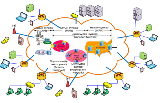3. Transmission system(Дамжуулалтын систем) : Үндсэн сүлжээний холболтын төхөөрөмж хүртэлх дамжуулах хэсэг