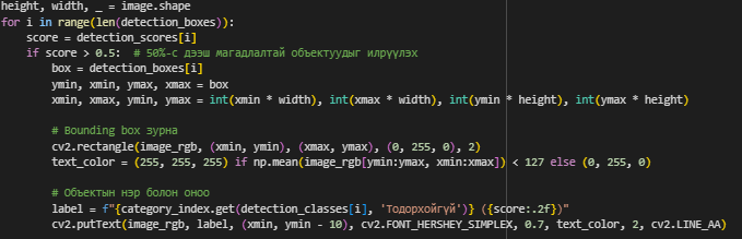 Өнөөдрийн жишээгээр бид SSD MobileNet V2 загварыг ашиглан Object Detection хийцгээе.