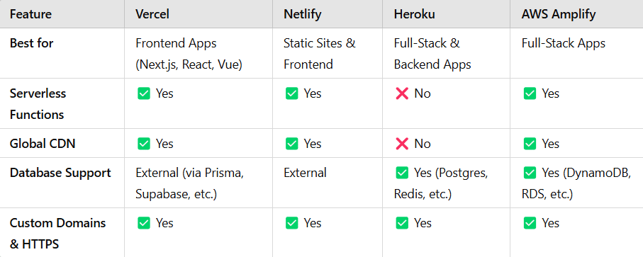 Vercel нь хурдан бөгөөд үр ашигтай байршуулахыг эрэлхийлдэг frontend хөгжүүлэгчдэд тохиромжтой бол Heroku зэрэг платформууд нь backend-хүнд програмуудад илүү тохиромжтой байдаг.