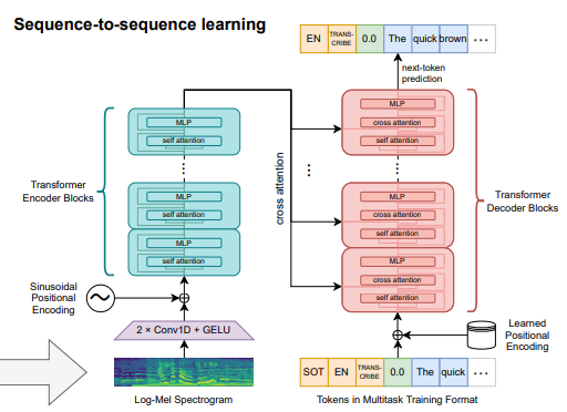 Whisper-ийн архитектур нь хоёр гол хэсгээс бүрдэнэ: Encoder ба Decoder.